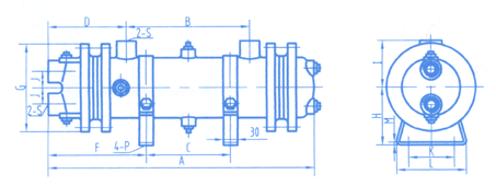 | 型號(hào) | 冷卻面 積m2 | A | B | C | D | F | G | H | I | J | K | L | M | P | O | S | 重量kg |